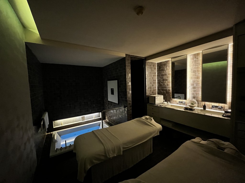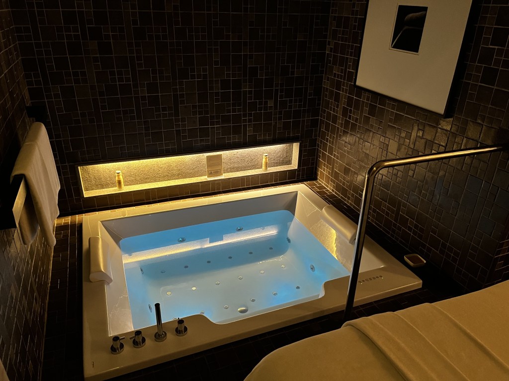 For the first step, they thoroughly scrub the whole body with ocean salt. Then, I shower at the shower room and bathe in the jacuzzi for a half hour. Finally, they massage with oil and end the treatment.