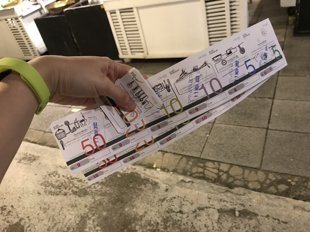 Food and souvenirs are bought by tokens.